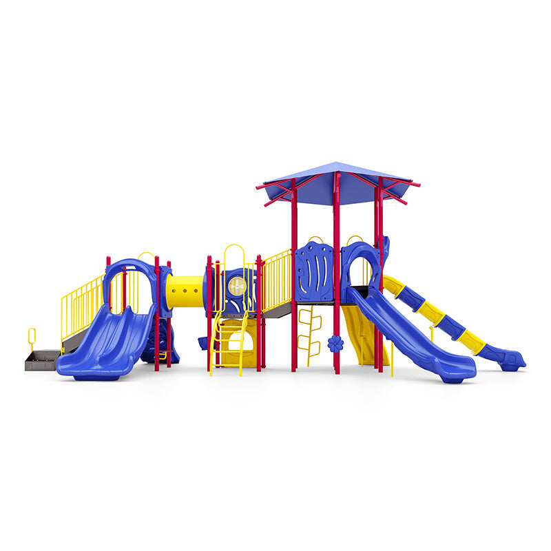 The Wisdom Harpers Place Playground Structure delivers the perfect blend of excitement, inclusivity, and developmentally appropriate play for children ages 5 to 12. From high-speed slides to imaginative sensory panels, this structure promotes physical activity, creativity, and social connection in a durable, ADA-compliant design.