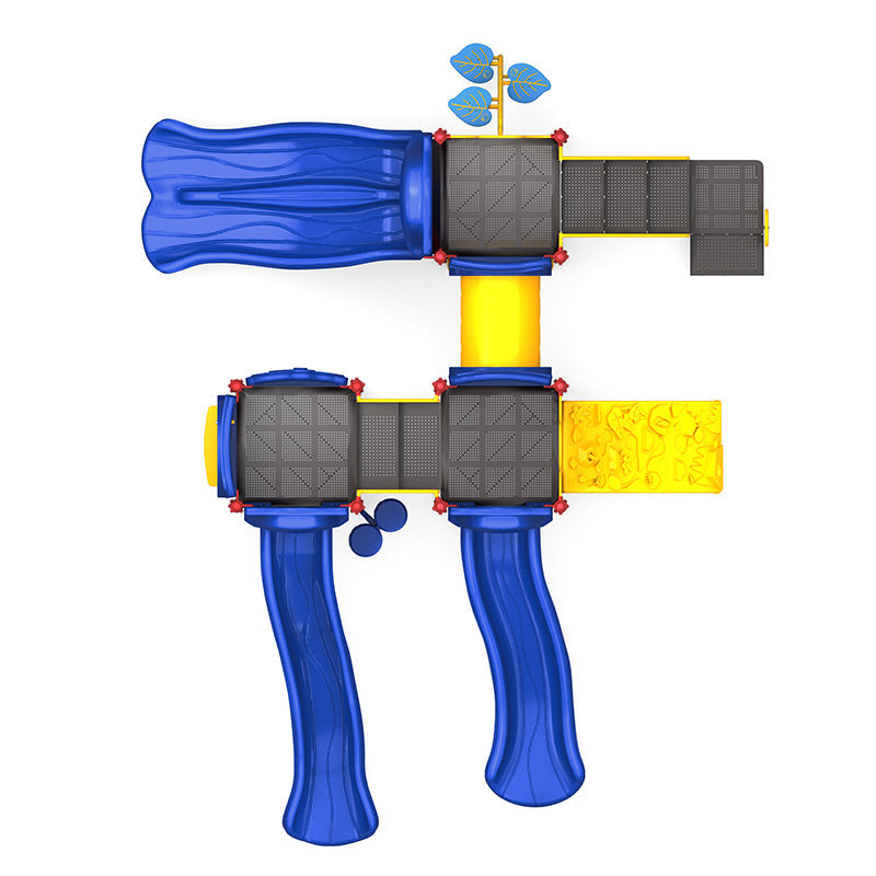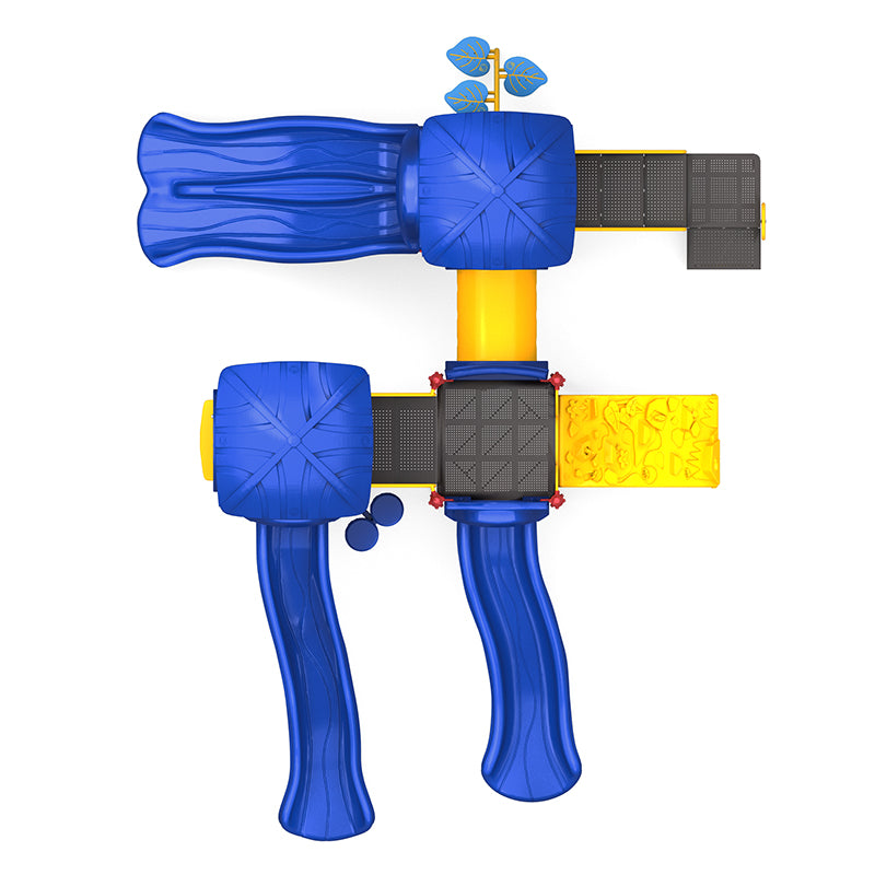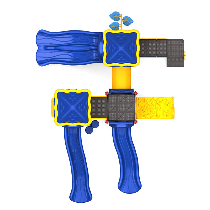 The Wisdom Timber Tracks Playground Structure blends adventure, inclusivity, and sensory play into one dynamic unit. Designed for children ages 5 to 12, this structure offers multiple slides, interactive panels, climbers, and imaginative features to keep kids engaged and active. Its compact footprint makes it ideal for schools, community spaces, and parks looking for maximum value and variety in a mid-sized space.