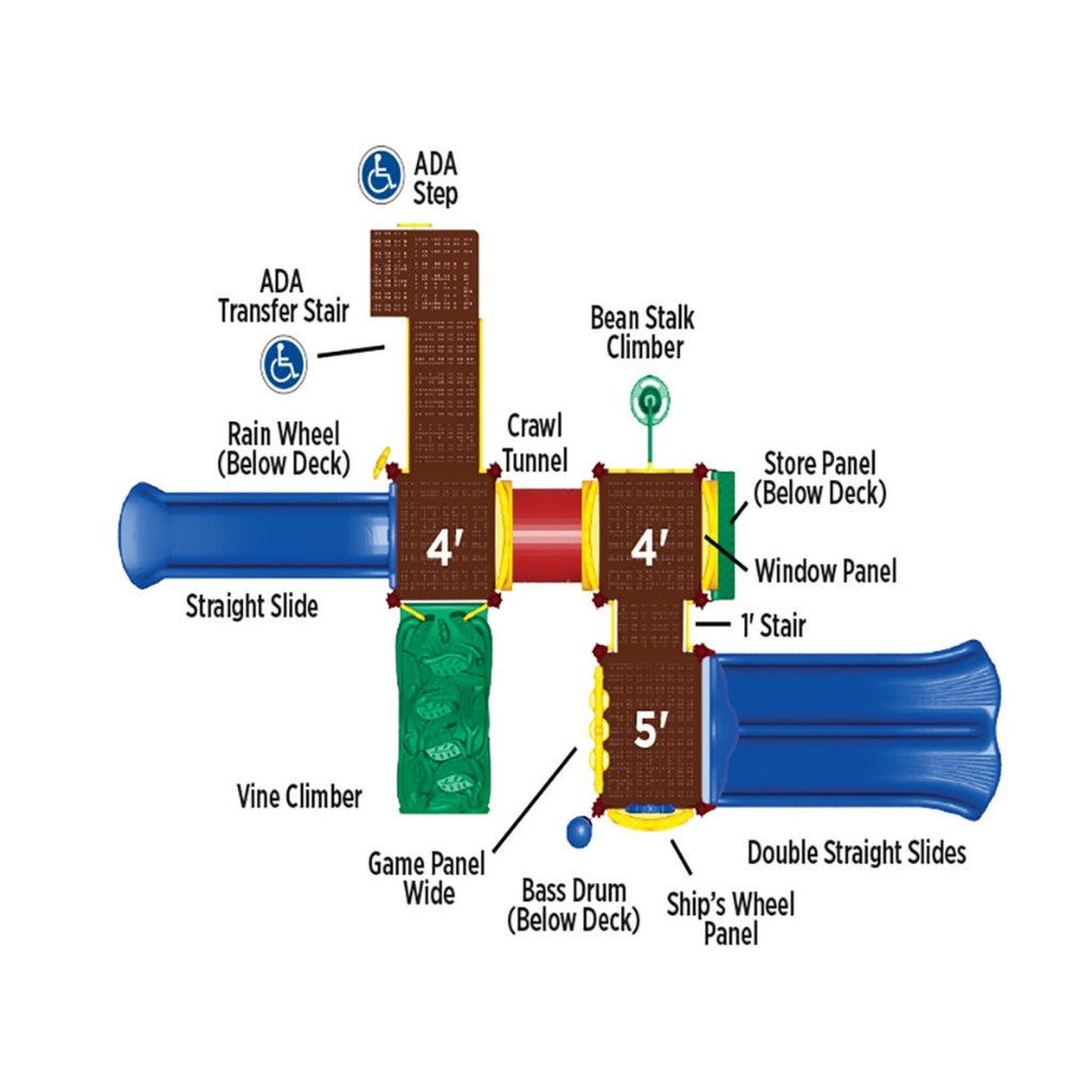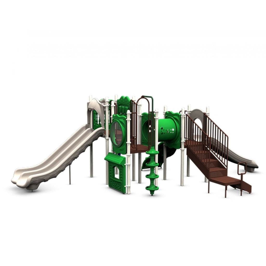 Carson’s Canyon is a versatile, feature-packed play system ideal for busy parks, large apartment complexes, or churches. Designed to maximize engagement, it offers a mix of sensory, musical, and active play components that support physical development and imaginative play for children aged 2–12. With two slides, multiple climbers, and inclusive ground-level features, this structure ensures fun and accessibility for all.