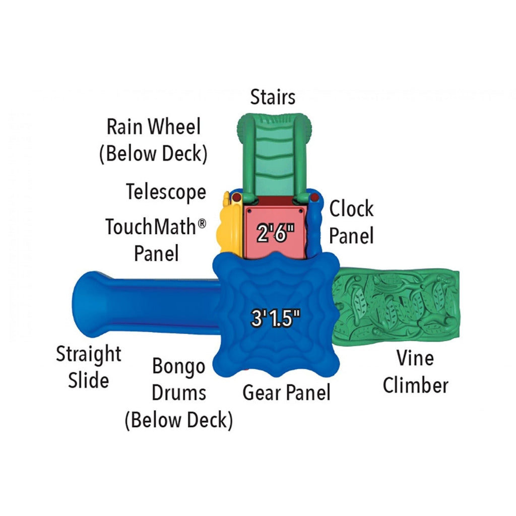 The Discovery Ridge packs high play value into a compact footprint, making it a great fit for smaller play areas. This two-deck structure features a range of developmental and educational activities that support physical growth, learning, and healthy habits.