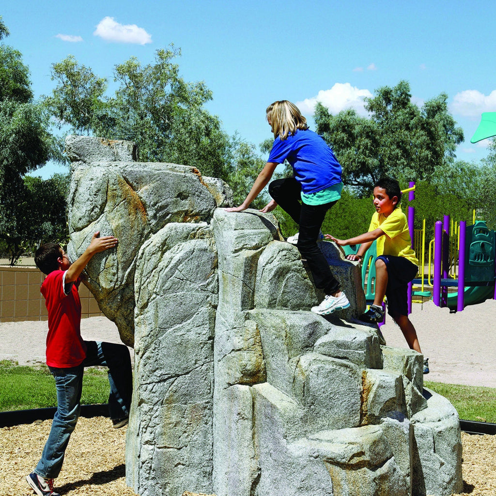 Challenge young climbers with the Medium Granite Boulder, designed for ages 5–12. Standing at 6 feet tall, this realistic boulder features detailed molding that mimics natural rock, adding beauty and adventure to naturalized play areas.