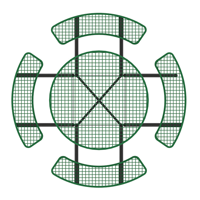 The familiar design — reminiscent of the sturdy, reliable tables found at schools and public parks — offers a welcoming place for gathering, eating, and socializing. The diamond-patterned surface provides excellent drainage to prevent water buildup, while the round shape and connected seating encourage easy conversation and interaction.
