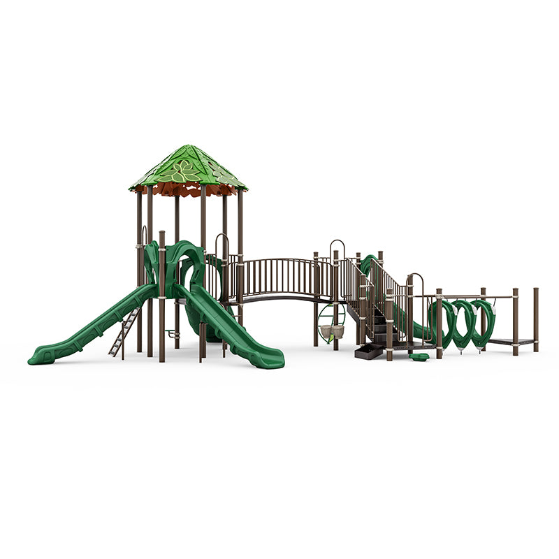 The Aloha Playground Structure brings a vibrant, island-inspired play experience to any outdoor space. Designed with lush green tones and nature-themed elements, this structure encourages active play, social interaction, and imaginative exploration.