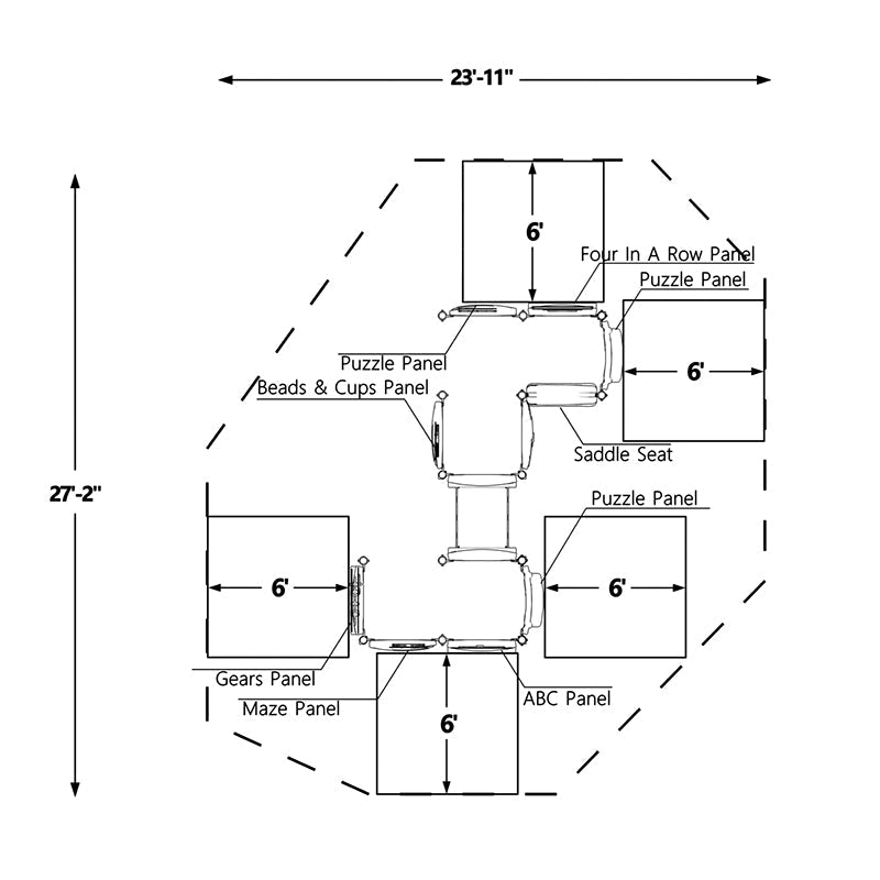 This play system offers a safe, enriching environment for infants and toddlers to grow, explore, and connect. With its compact layout and developmental focus, it’s a perfect fit for nurturing early learning and sensory play in any small-scale outdoor space.
